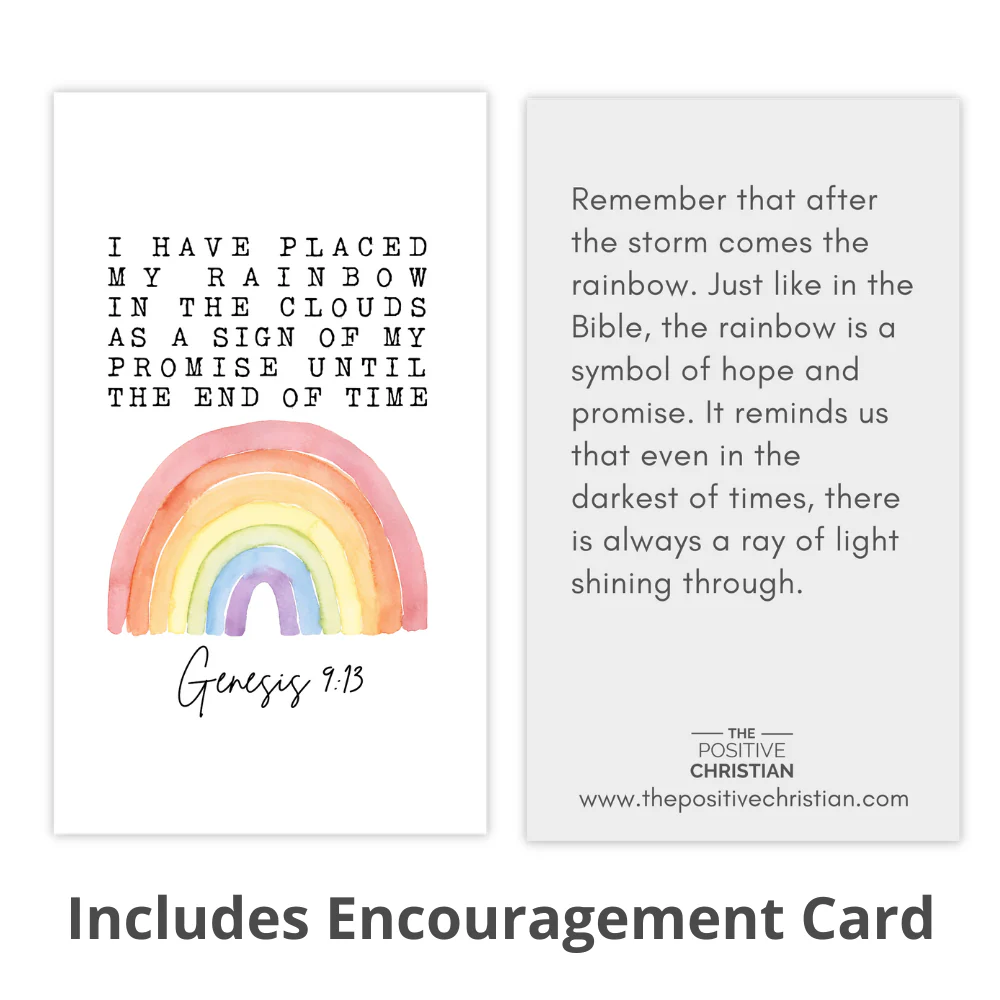 The rainbow was created by God as a reminder of His promise. Now, through His Word, we have so many great and precious promises. May this bracelet remind you of His promise and encourage your faith.Ā